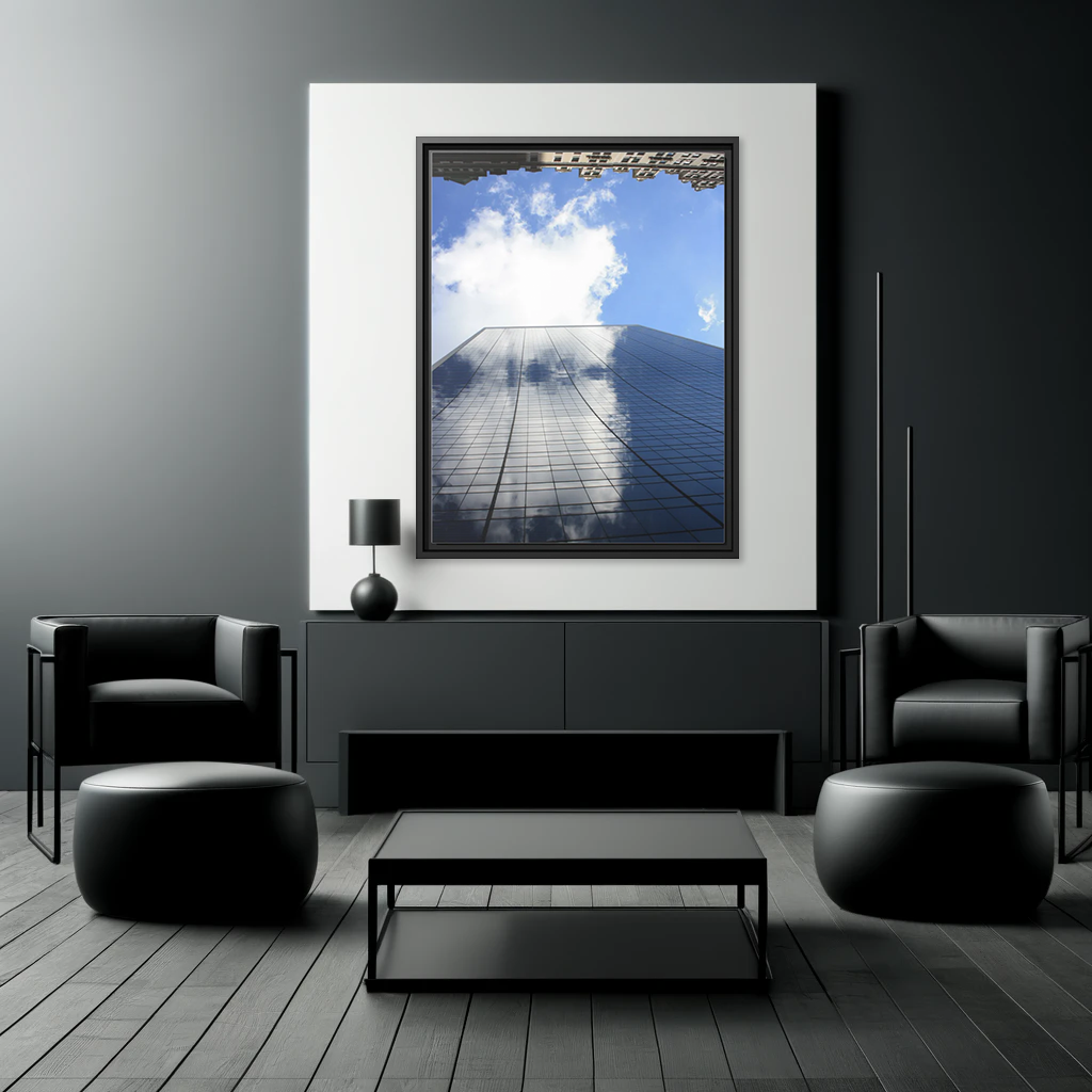 The "Glass & Stone: New York" canvas art captures the striking beauty of a New York skyscraper reaching toward the sky. Its reflective glass facade merges seamlessly with the clouds, creating a captivating blend of architecture and nature. The contrast of sharp lines and soft clouds adds depth and elegance to the piece. Framed in a minimalist style, it’s perfect for adding sophistication to any modern space. This canvas is more than art—it’s a statement of urban grandeur and timeless allure.